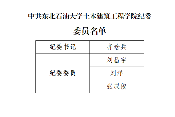 中共东北石油大学土木建筑工程学院纪委委员名单