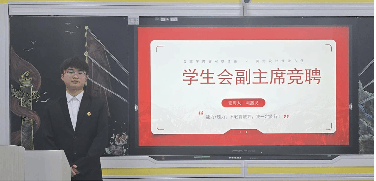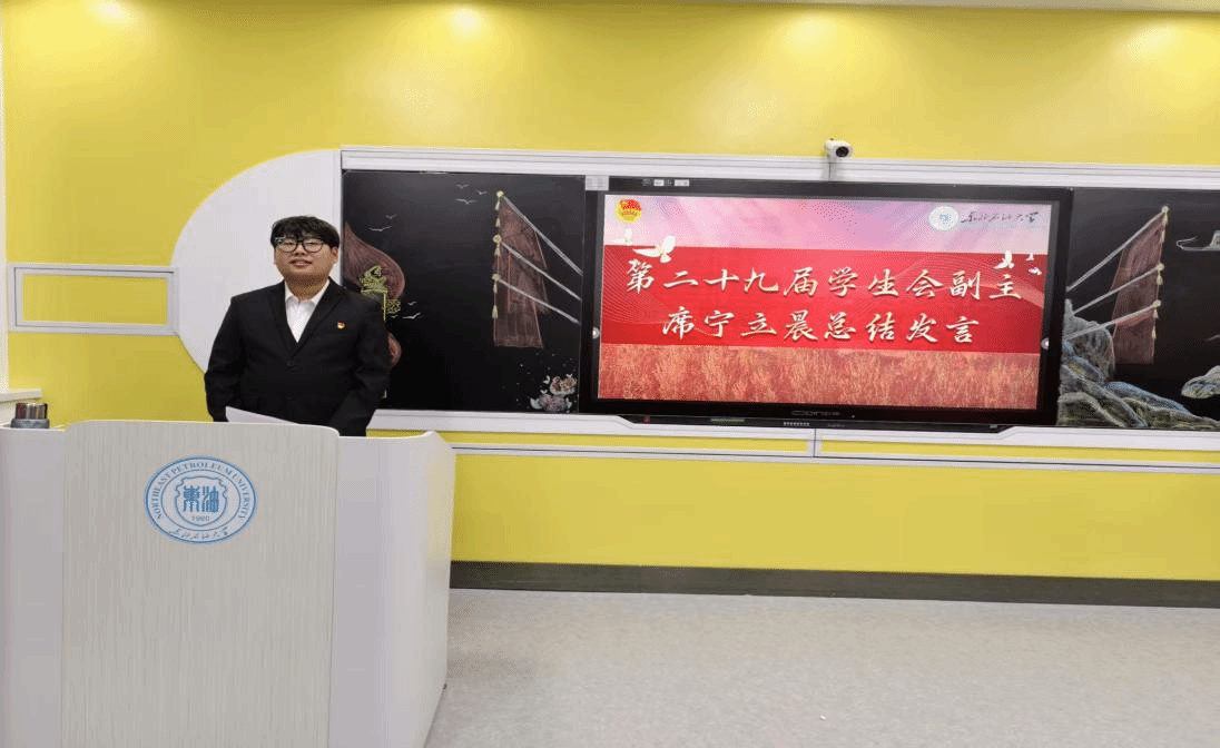 第二十九届学生会副主席宁立晨代表学生会作工作报告,他系统回顾了学生组织在思想引领、内部改革、服务同学和校园文化创新等方面所做的努力与成效。他号召全院同学继续发扬“艰苦创业、严谨治学”的校训精神,以实际行动助力学院高质量发展。