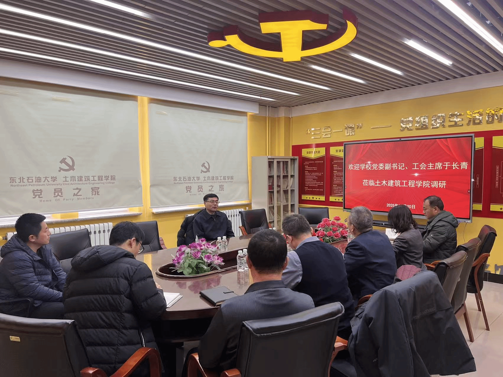 11月20日上午,为落实学校领导联系基层制度,学校党委副书记、工会主席于长青深入土木工程系党支部联系点开展调研工作,学院领导班子、土木工程系党支部书记卢召红和教师代表参加。