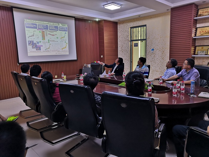 Yoshitaka Sakata博士阐述了其团队在地热能及热泵方面的研究进展,介绍了基于日本地质的地热能仿真情况及热泵利用潜力评估,并为我院师生做题为“Nation-scale Modeling of subsurface geology and evaluating potential utilization of ground source heat pump systems”的学术报告。