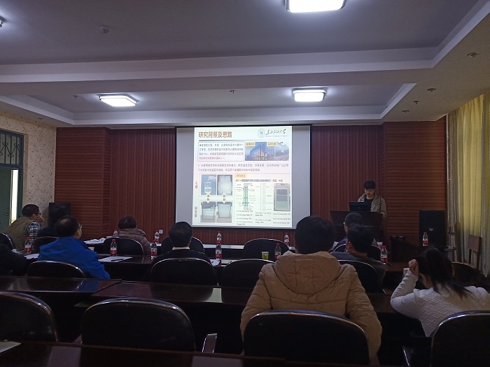 2016级硕士研究生刘城昊、吴洋洋、张一帆、鲁镇语、王迪和张佳分别口头汇报了“基于碳层表面沉积的SiO2绝热材料疏水改性研究”、“含纳米颗粒石蜡玻璃窗太阳能光热利用研究”、“非均匀纳米流体辐射特性研究”、“热-化学耦合作用下蜡层相变脱除机智与促进方法研究”、“制冷压力管道氨气泄漏扩散特性及激光检测研究”和“保温材料多孔介质热湿耦合传递机理研究”课题研究进度以及相关学术成果取得的情况,并就研究过程中遇到的难点和问题与各位老师进行了研讨交流。中期检查小组经过评议和讨论,肯定了论文符合中期考核要求,同时就论文存在的问题及下一步如何完善提出了切实中肯的建议。