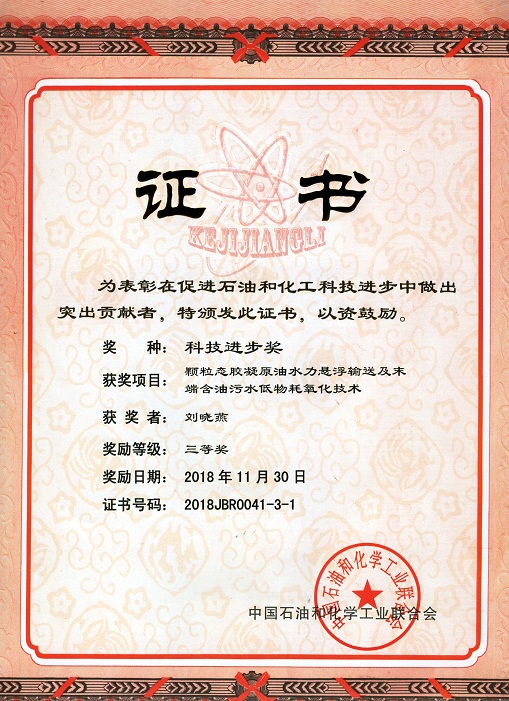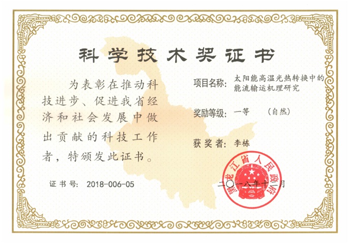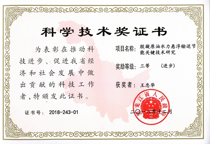王忠华副教授申报的“胶凝原油水力悬浮输送节能关键技术研究”项目获黑龙江省科学技术奖(科技进步类类)三等奖。我院李栋教授参与哈尔滨工业大学申报的“太阳能高温光热转换中的能流输运机理研究”项目获黑龙江省科学技术奖(自然科学类)一等奖。刘晓燕教授申报的“颗粒态胶凝原油水力悬浮输送及末端含油污水低物耗氧化技术”项目获中国石油和化学工业联合会科技进步三等奖。
