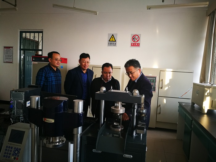 座谈会后,朱宏志一行在院长马令勇的陪同下参观了土木工程实验室。