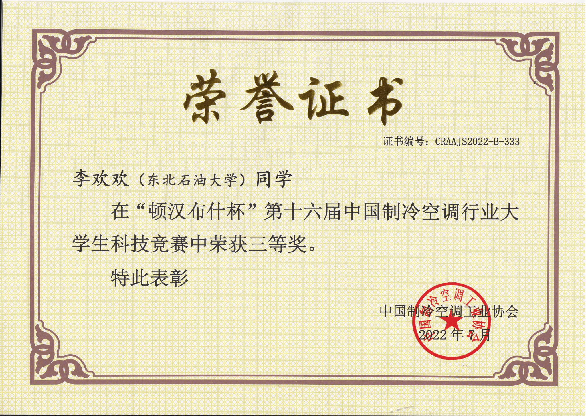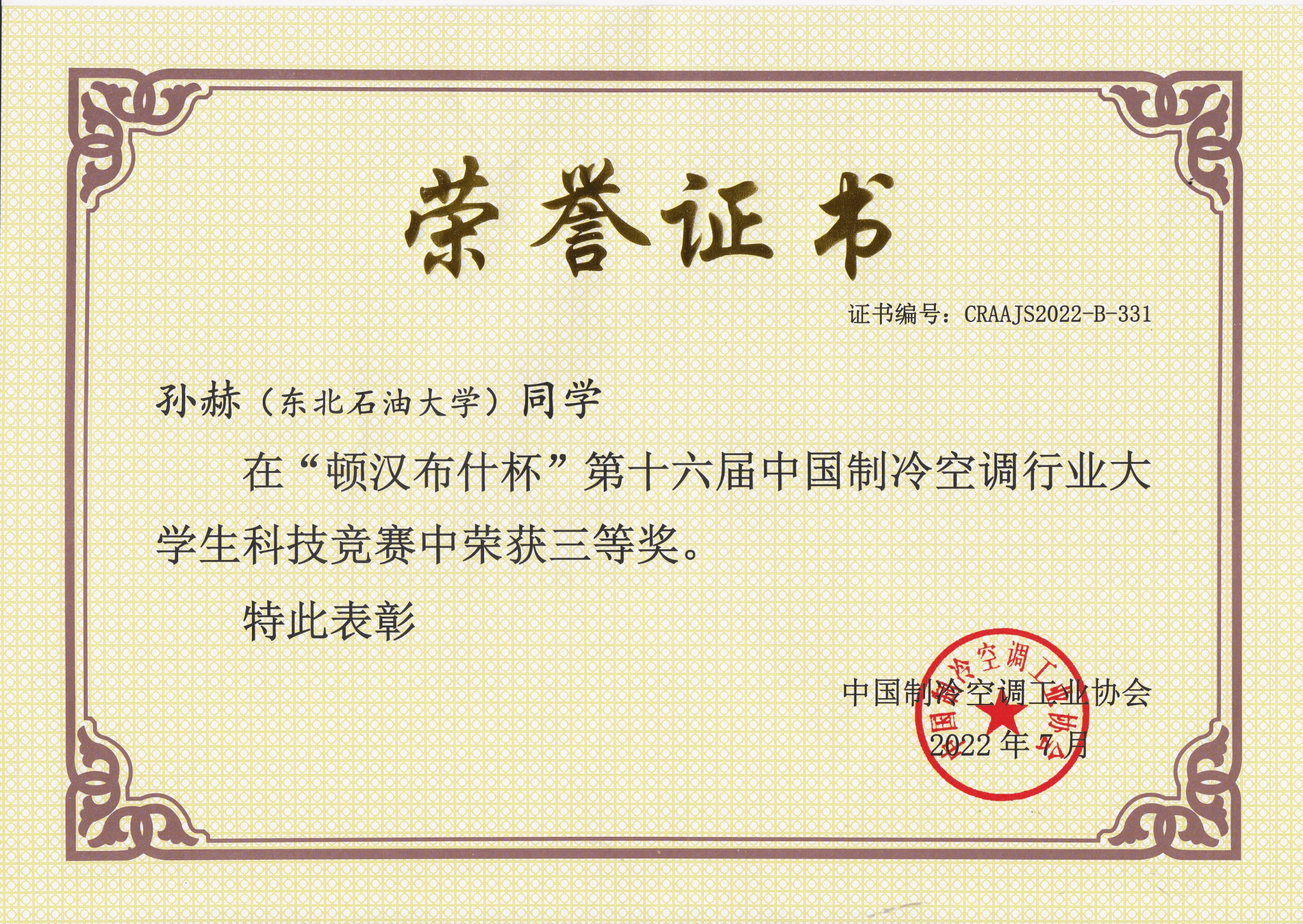 9. 学生赛事再创佳绩。承办中国制冷空调行业大学生科技竞赛、全国大学生结构设计竞赛黑龙江省分区赛,获互联网+大学生创新大赛国家级铜奖2项、制冷空调大赛国家级奖项9人次、结构设计大赛国家级二等奖1项、全国大学生节能减排社会实践与科技竞赛三等奖2项。