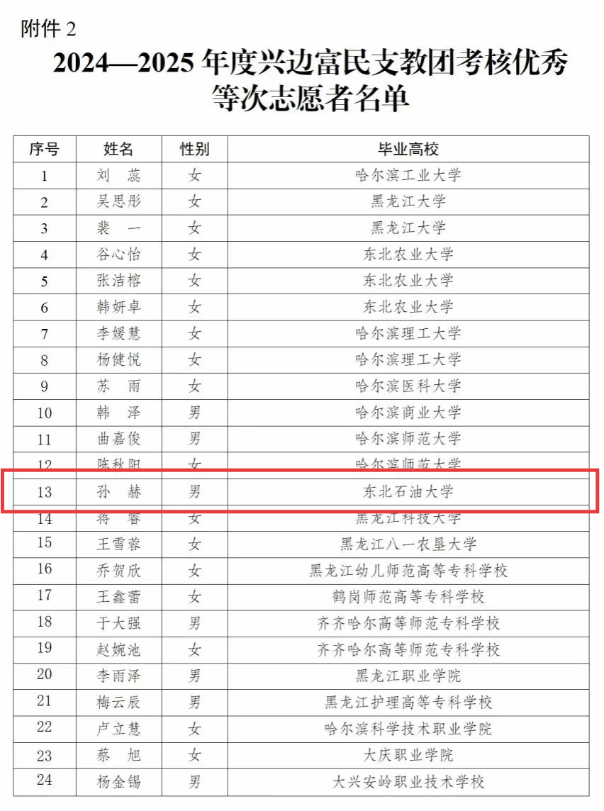 6. 师资队伍实现新跨越。新增省政府特贴获得者1人、省高层次人才D类4人、省高层次人才E类4人、庆雁2人,入选全球前2%顶尖科学家榜单5人次、黑龙江省博士后英才计划1人、黑龙江省青年科技人才托举工程2人。