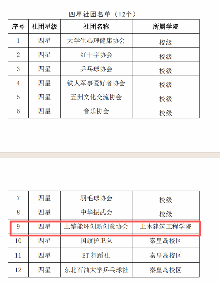 近日,东北石油大学2025年度学生社团星级评定结果正式公布。土木建筑工程学院土擎能环创新创意协会从全校参评社团中脱颖而出,荣获“四星社团”称号,充分彰显了学院在“四创”教育与专业融合方面的突出成效。