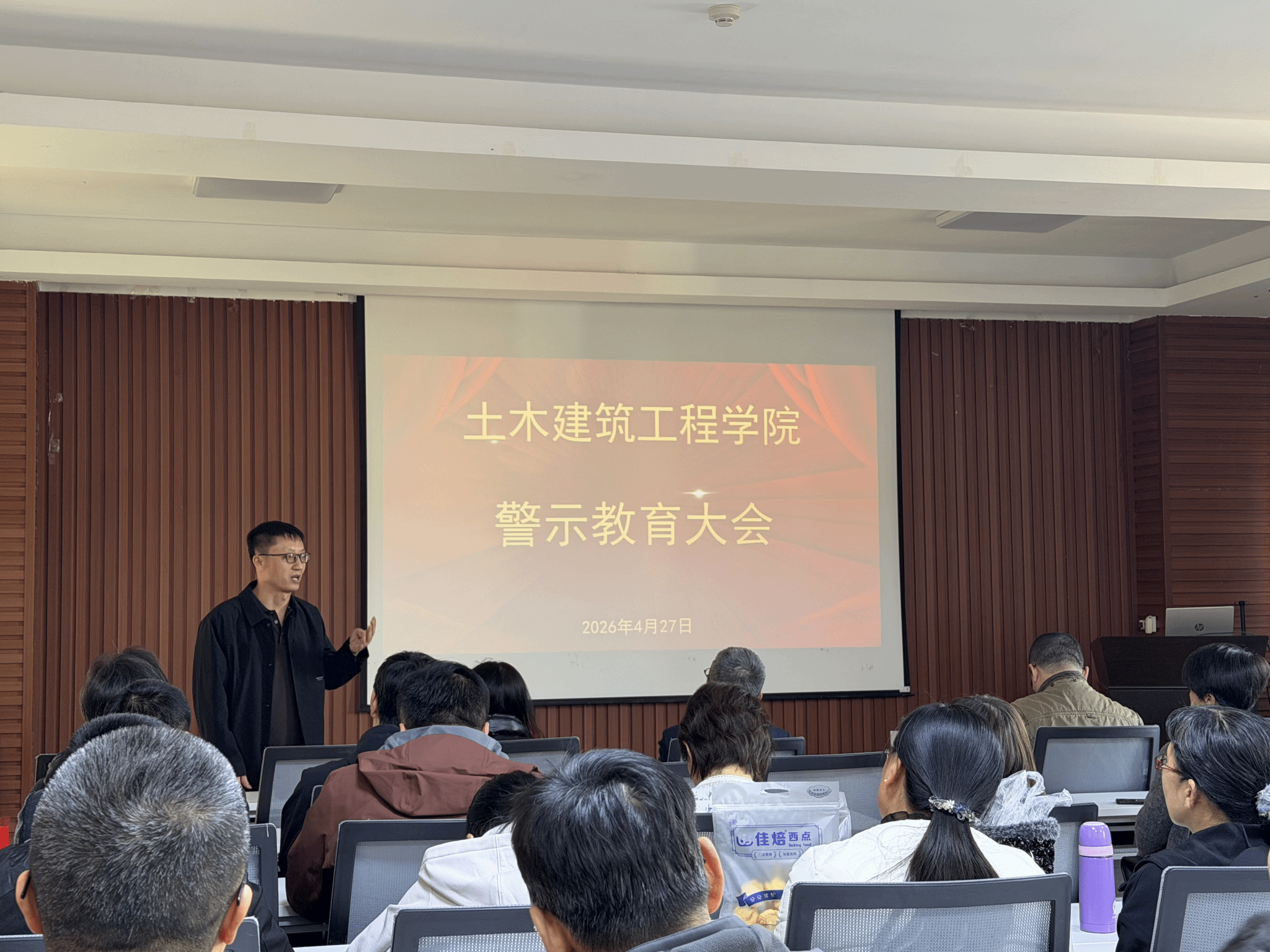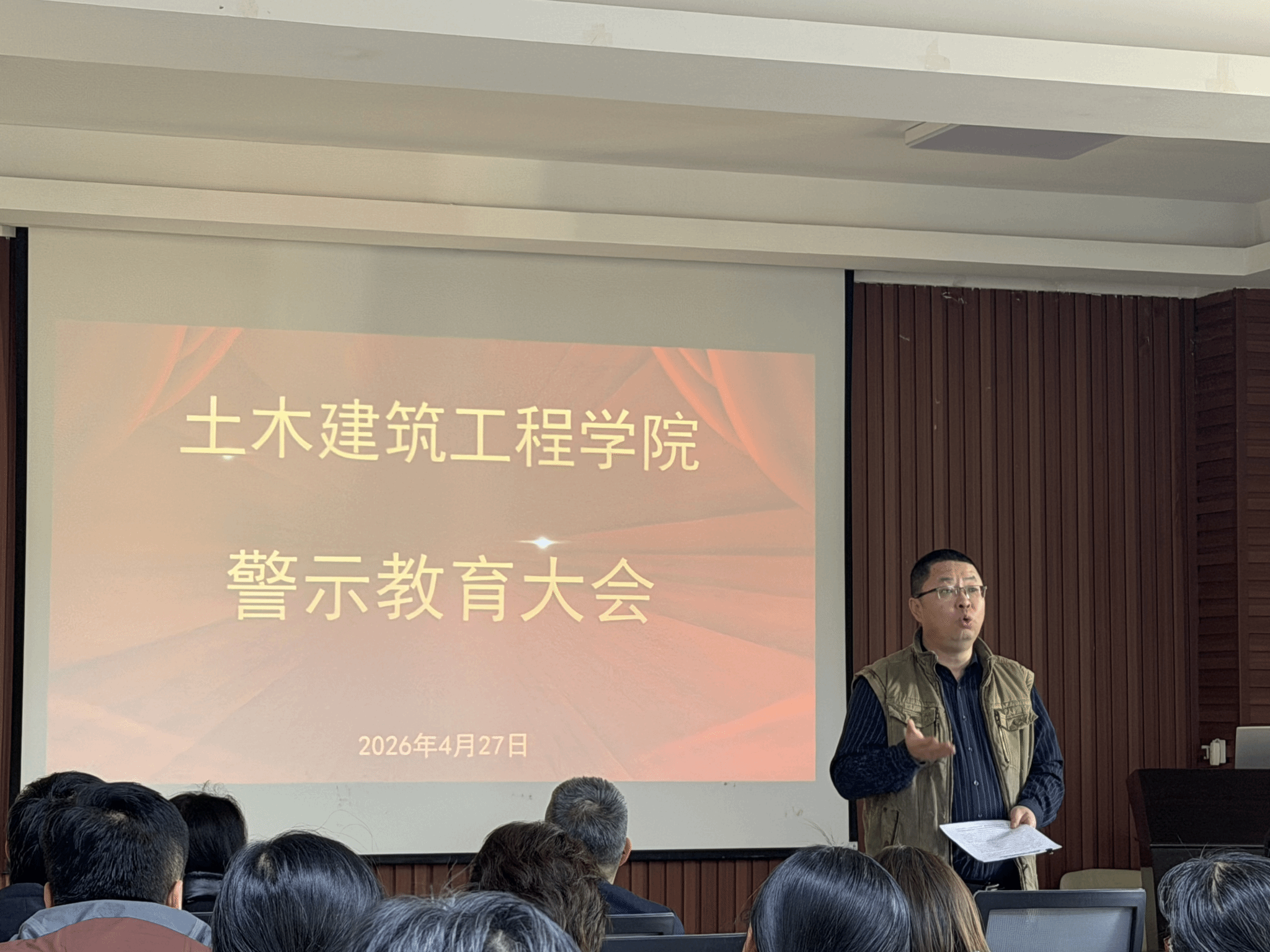 为深入推进深化教育领域腐败整治工作,强化全体教职工的纪律规矩意识,引导大家树立和践行正确政绩观,4月27日下午,我院在土木馆712会议室召开警示教育大会。学院全体教职工参会,会议由党委书记艾长冬主持。