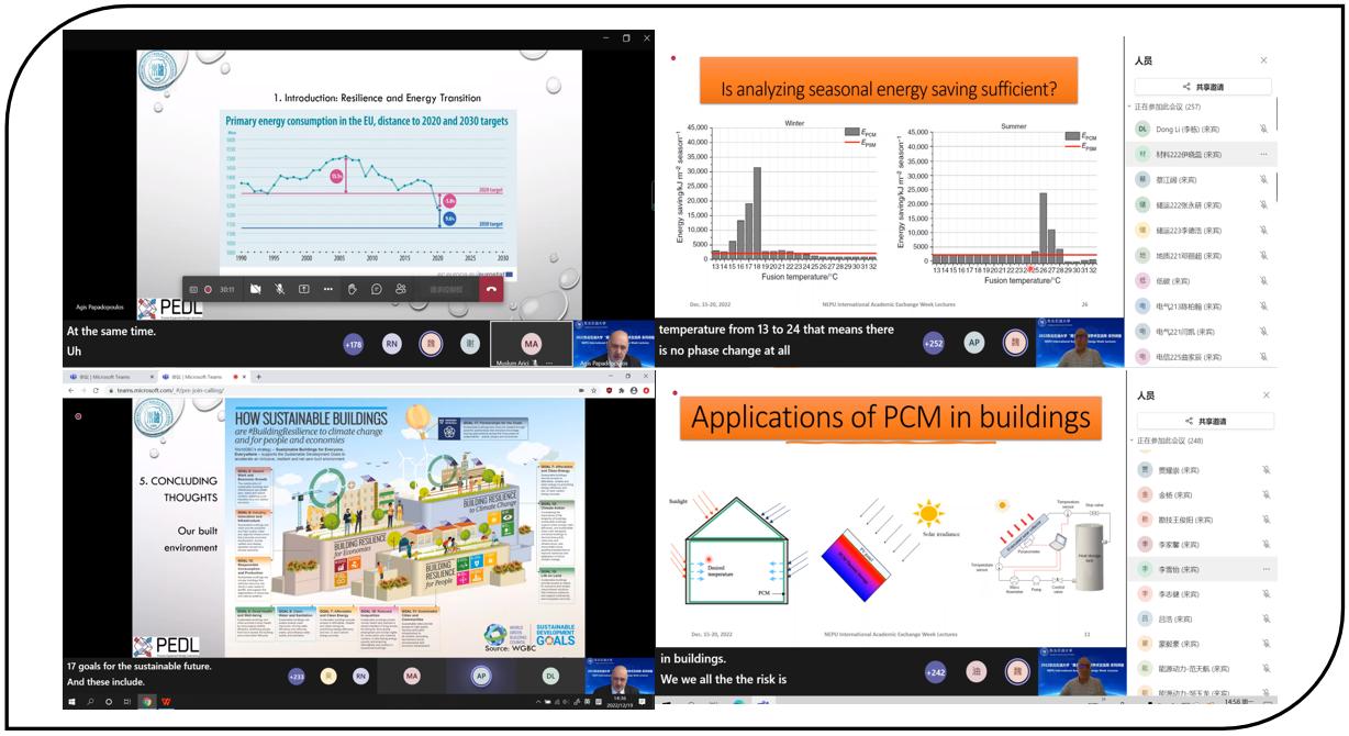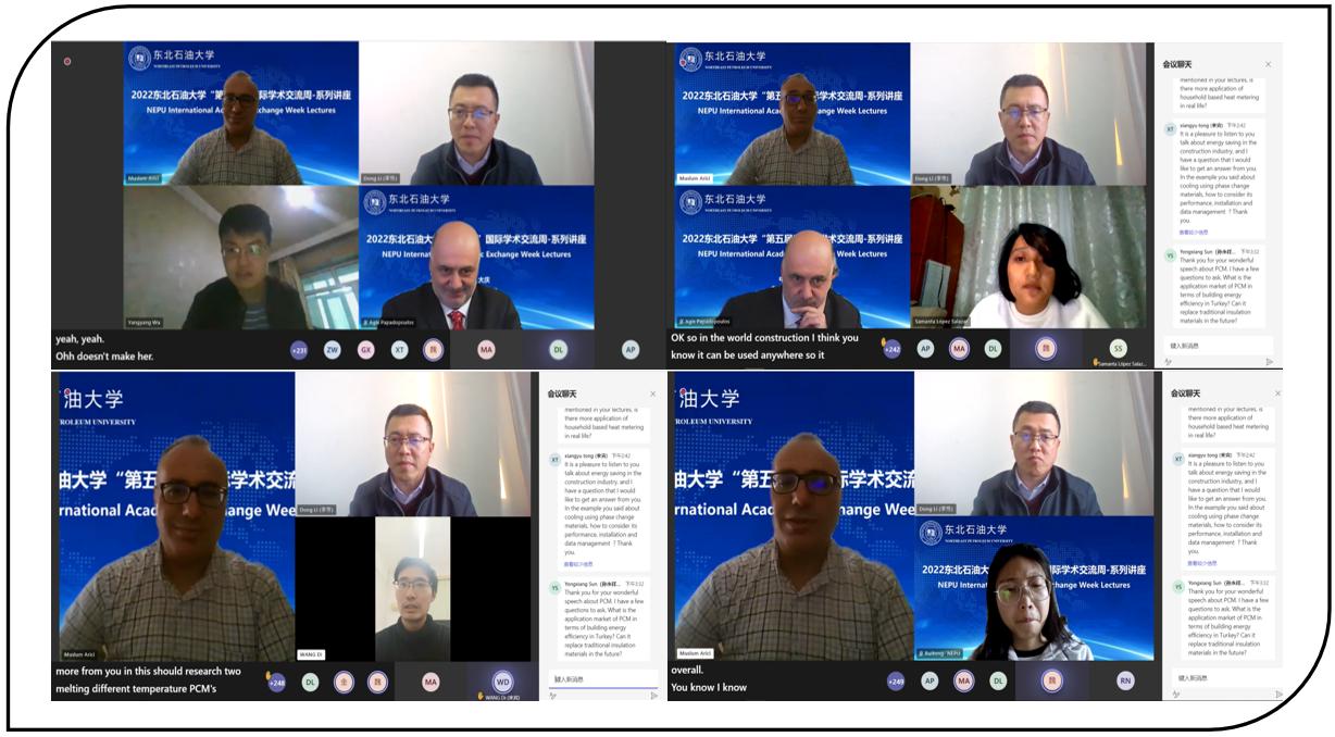 汇报结束后,参会人员同Agis Papadopoulos教授和Müslüm Arici教授积极互动,我院青年教师高梦和硕士研究生佟翔宇分别就“副热带夏干气候下基于家庭的热量计量创新方式应用前景”和“相变材料制冷技术性能和数据管理策略”等问题同Agis Papadopoulos教授和Müslüm Arici教授进行了深入探讨。此外,我院青年教师吴洋洋副教授、博士研究生王迪、博士研究生杨瑞桐、硕士研究生郭曦和来自墨西哥国家技术研究发展中心的硕士研究生Samanta ópez Salazar分别与两位教授进行了友好互动。