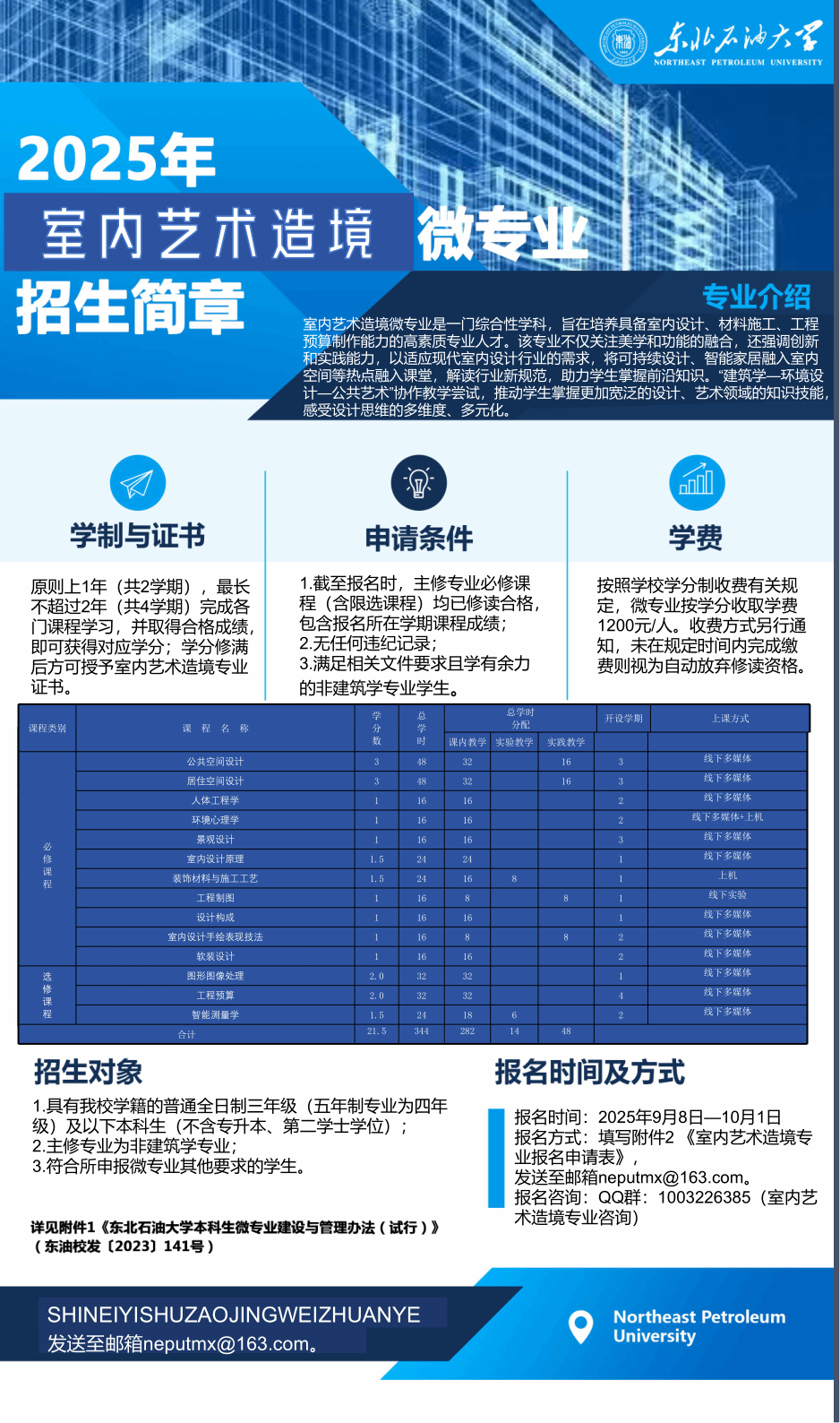 报名方式:填写附件2 《室内艺术造境专业报名申请表》,发送至邮箱neputmx@163.com。