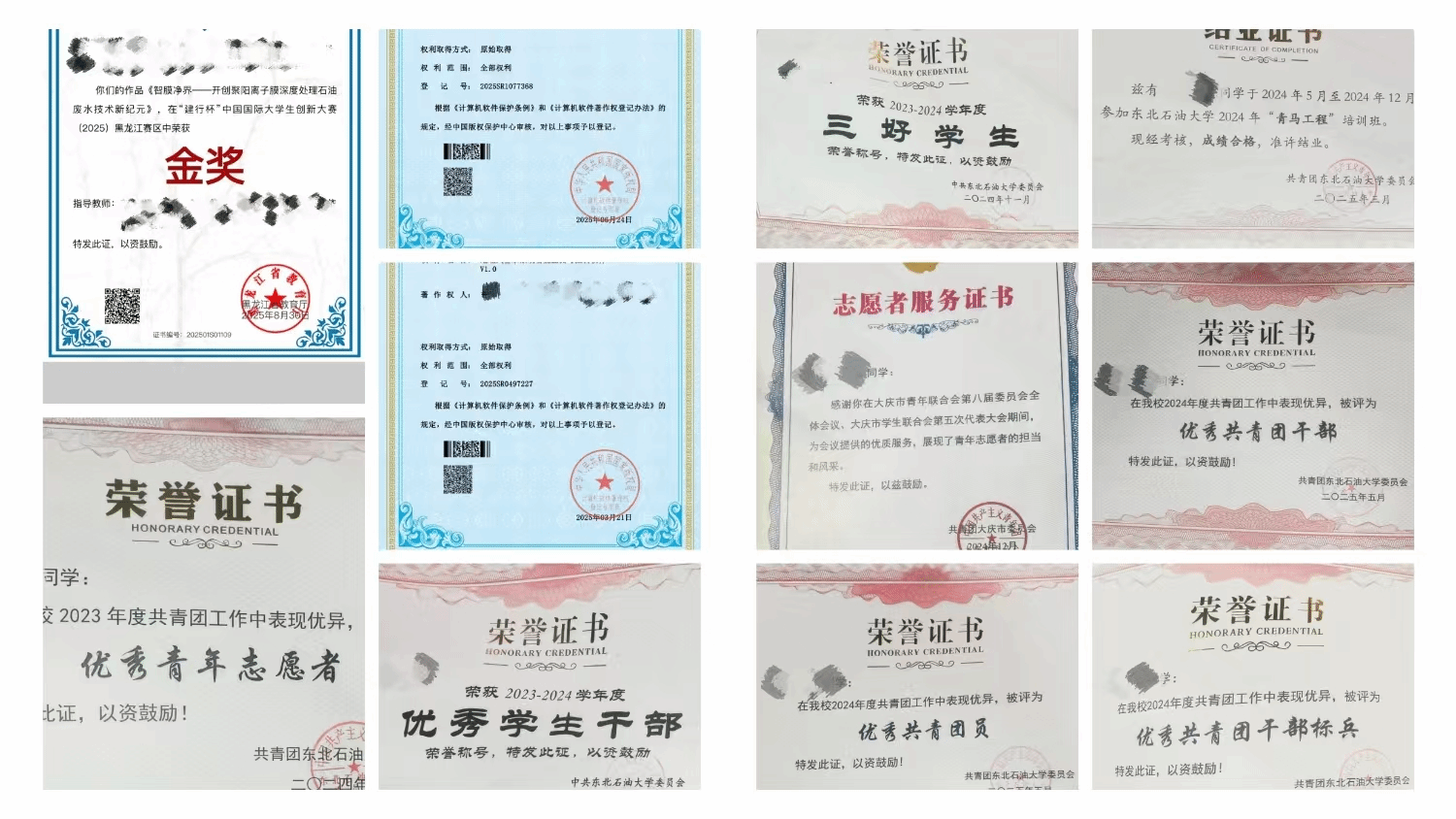 在工作中,我始终认真负责,也因此荣获了优秀青年志愿者、优秀团员、优秀团干部等荣誉称号。学习上,我也保持踏实用功,大一学年就一次性通过了外语四级考。为了提升专业素养,我努力钻研,能够熟练应用CAD、Revit、Solid works等工程软件。同时积极参与大学生创新创业活动,所在的本科生 《地埋式一体化海绵校园蓄水工程》 项目组的项目被评审为省级指导项目,在 “建行杯” 中国国际大学生创新大赛黑龙江赛区中,团队还斩获了黑龙江赛区金奖。
