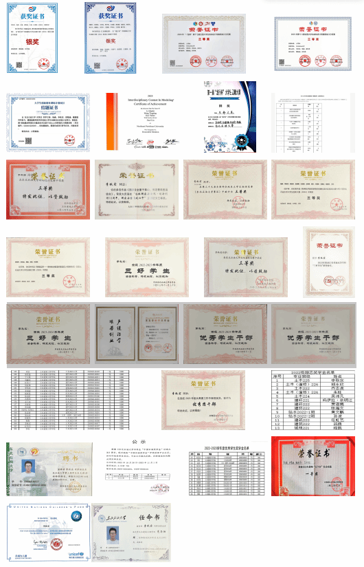 在本科生阶段专注于专业学习,经过不懈努力,我在本科生阶段课程绩点达到(3.57/5),综测成绩排名年级第三,并且获得本校推免资格,现推免至哈尔滨工程大学,荣获王玉普励学圆梦奖学金、国家励志奖学金、中石油奖学金、一等学业奖学金、黑龙江省三好学生等荣誉。积极参加各种大学生竞赛以及老师和研究小组的各项科研任务,共参与省部级科研项目3项(均已结题),校级项目若干,其中参与省级大创两项,以负责人身份参与一项,第二参与人身份参与一项,以第二参与人身份参与黑龙江省“揭榜挂帅”项目一项。秉持 “敢创新、勇竞争” 的理念,多次主动参与科技创新创业竞赛及学科竞赛,以实战检验能力、以竞争推动突破,积累了丰富的赛事经验与创新实践成果。本科期间共获得国际级奖项一项,省部级以上奖项5项,其中包括美国大学生数学建模竞赛 H 奖(一项)、“建行杯”中国国际大学生创新大赛黑龙江省银奖(两项)、铜奖(一项)、全国大学生结构设计大赛黑龙江省三等奖(两项)等。作为一名优秀的本科毕业生,始终秉持 “学用相长” 的理念,致力于推动专业知识与工程实践的深度融合,在实践过程中系统提升专业技能与综合素养。同时,积极参与志愿服务活动,通过应对并解决实际问题强化实践能力,切实将理论认知转化为行动实效,践行 “知行合一” 的发展准则。本科期间曾获联合国儿童基金会月捐证书、东北石油大学 2023 年暑期“三下乡”一等奖、东北石油大学“杰出招生宣传志愿者”荣誉称号、大庆高校“总体国家安全·创新引领 10 周年,国家安全在我心中”主题征文三等奖等。我还积极参加体育锻炼,做到德智体美劳全面发展,曾获大庆市第一届“龙行杯”大学生雪雕大赛铜奖。